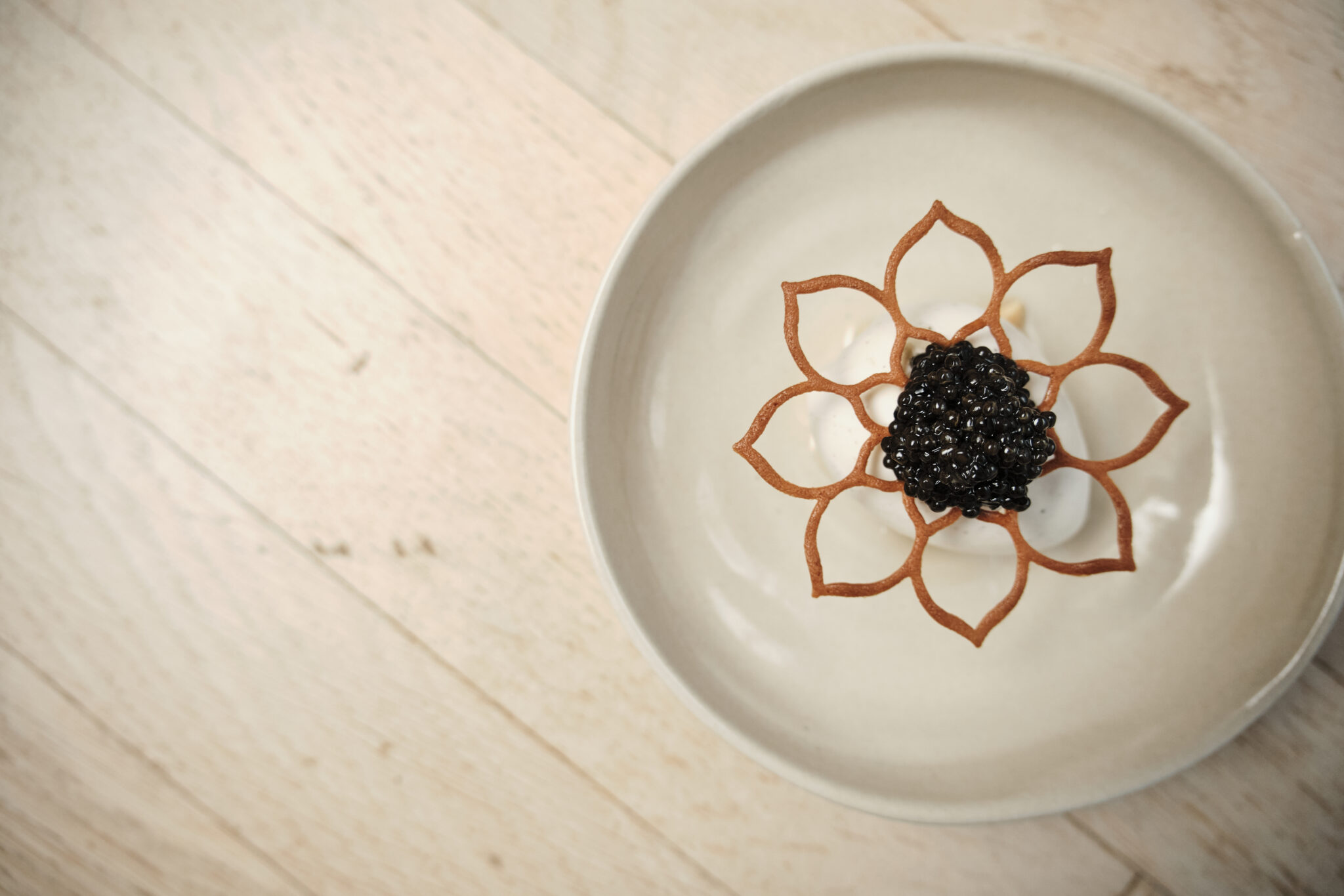 Cremet is på vanilje & mælk, piemontesiske hasselnødder & Lyksvad baerii caviar